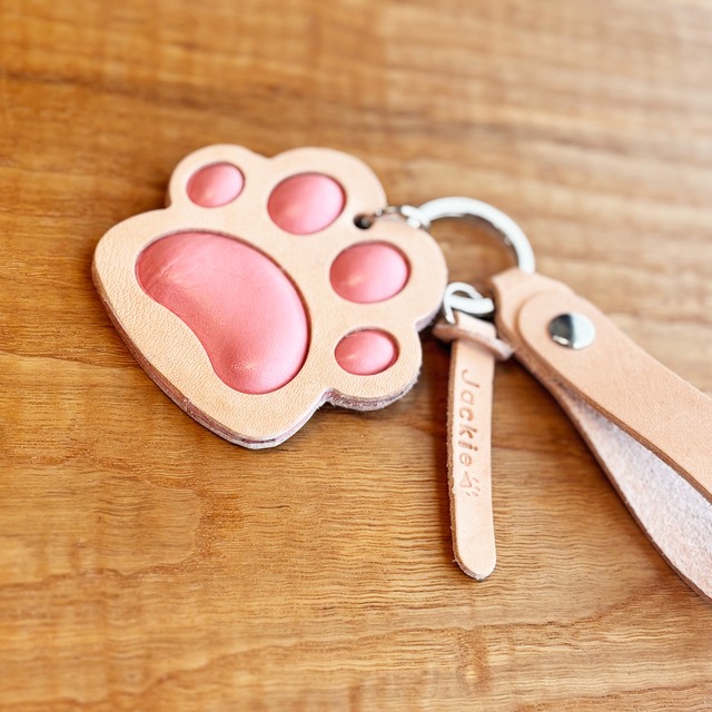 肉球部分にクッションを入れ、ぷにぷにを長く楽しめるキーホルダーです。 手で握れる大きめサイズで、バッグでの迷子防止にもぴったりです。 ホルダー部分は革ベルトとキーリングから選べます。 タグにお名前を入れることもできます。 ■ ぷっくり、ふっくら。癒しの肉球モチーフ 思わずずっと撫でていたくなるような、ふっくらとした立体感のある肉球デザイン。 革が持つ本来の温かみと相まって、犬好き・猫好きにはたまらない愛らしいフォルムに仕上げました。 ■ かわいいだけじゃない。本革の本格的な経年変化 見た目はキュートですが、素材は職人が厳選した上質な本革を使用しています。 均一な大量生産品とは違い、裁断から縫製まで一点一点手作業で仕立てた本格仕様。毎日触れることで少しずつ色艶が増し、あなただけの味わい深い色へと育っていきます。 ■ いつもの毎日に、さりげないワンポイントを ・お家の鍵や、車のスマートキーの相棒として ・いつものトートバッグやリュックのチャームとして ・大切な方や、動物好きなご友人へのギフトとして 【仕様・サイズ】 ・素材:本革 【ご購入前の注意事項】 ※天然皮革を使用しているため、製品ごとに色合いやシワなどの個体差がございます。本革ならではの個性としてお楽しみください。 ※水濡れや強い摩擦による色移りにご注意ください。
