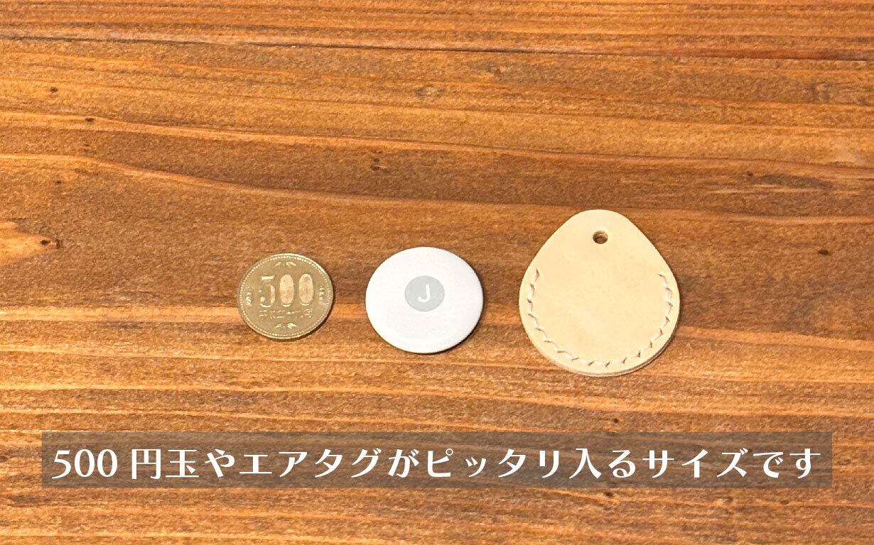 500円玉やAirTag(エアタグ)がぴったり収まる、コロンと可愛いレザーホルダーです。
