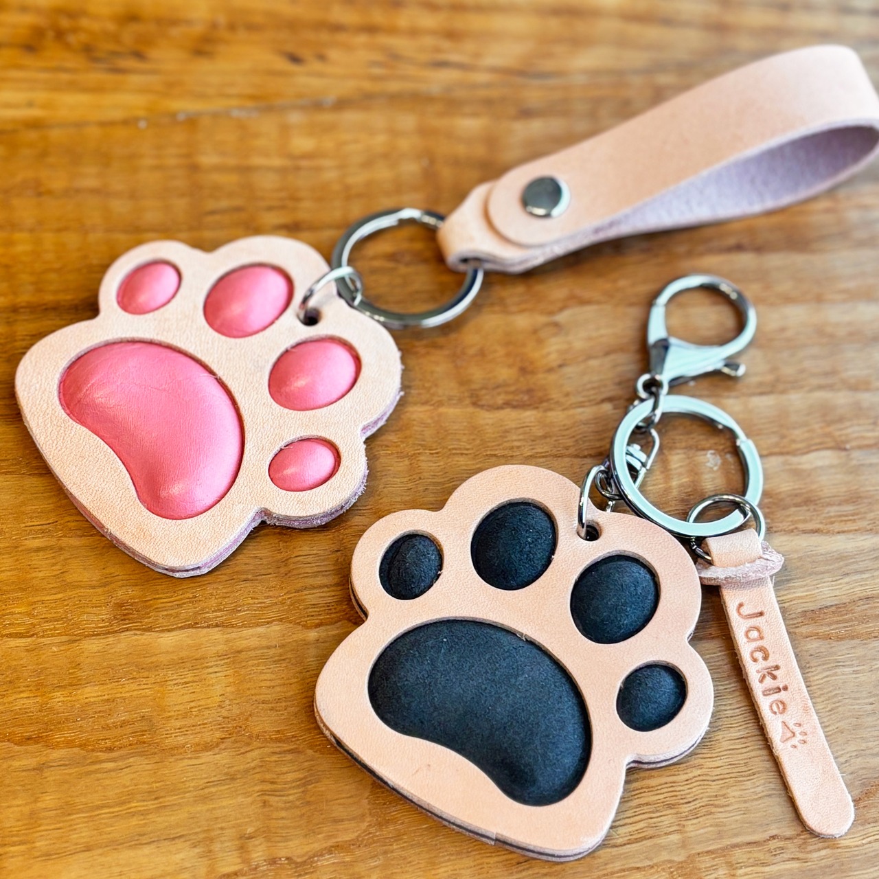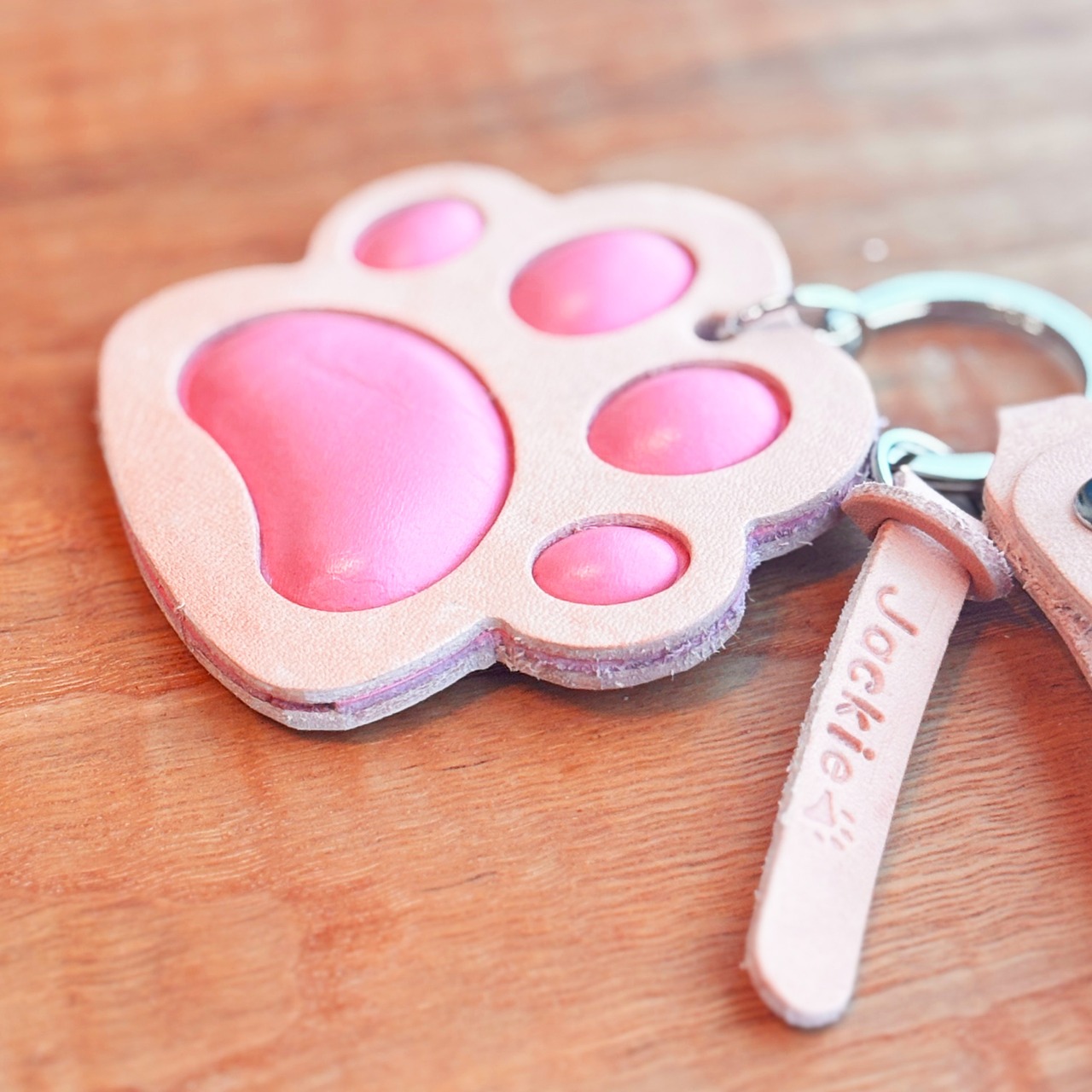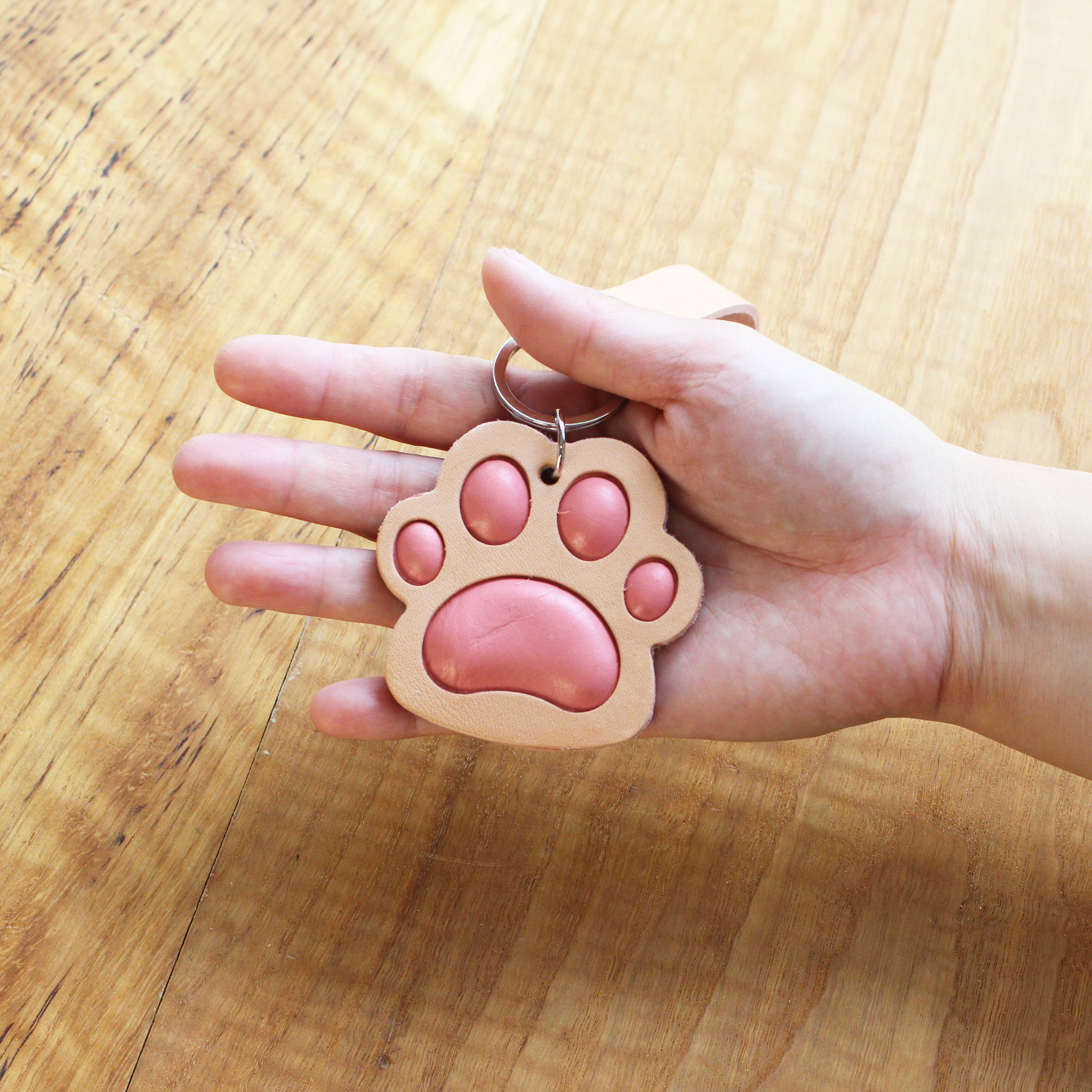 肉球部分にクッションを入れ、ぷにぷにを長く楽しめるキーホルダーです。